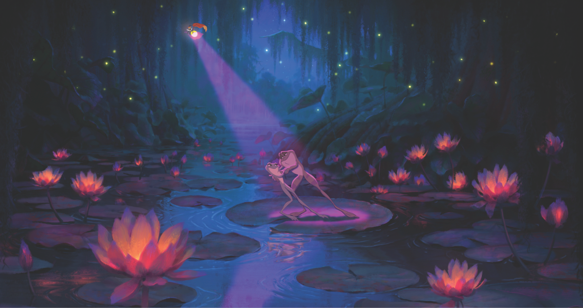 (L-R) Ray, Frog Tiana, Frog Naveen ©Disney Enterprises, Inc. All Rights Reserved.