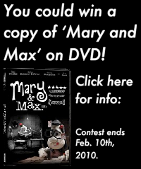 Adam Elliot’s claymation film for adults about Asperger’s syndrome and friendship, Mary and Max, is now available on DVD. You can read our reviews here. We have one copy to give away to a lucky reader. Good luck!