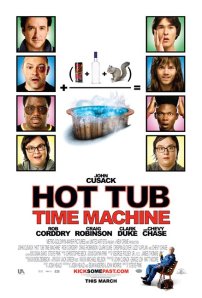 Four guys from 2010 get together for a night of drinking and wild partying. They try to hire an escort, but she is not available, so they naturally decide to pile into the hot tub. Not sure why they take their clothes off first, but cue the Wild Hogs reference. It’s also got references to 1980’s pop-culture of all stripes, including Back to the Future, Terminator and other things pertaining to time travel. The film also has nods to The Shining, a shot of bare breasts, at least two scenes of projectile vomiting and other extreme gross-out gags.