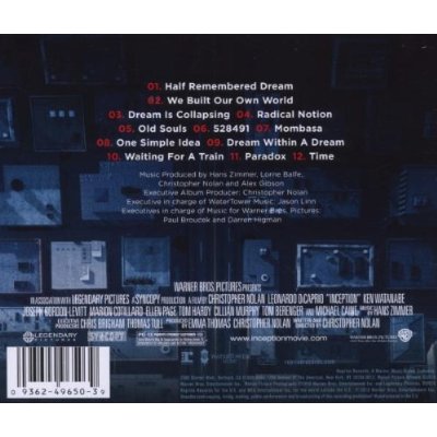 Each of the different sequences in the movie have a slightly different sound. There is one part of the score that goes into a percussion beat/guitar riff, while the horns and strings bring in parts of the themes in the background – which is interesting to say the least. There are also electronic synth sounds throughout, matching the slightly strange world of inception.