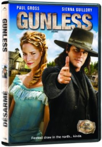 Paul Gross plays American gunslinger ‘The Montana Kid’ in the Canadian western Gunless.  When he stumbles into a small town in western Canada, he challenges the local blacksmith to a shootout for no good reason, and starts to develop feelings for a local widow.  The plot is aimless and features many lame, sometimes sick jokes and obnoxious stereotypical characters.  It’s borderline racist, too, even for Canadians.