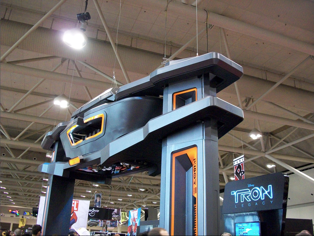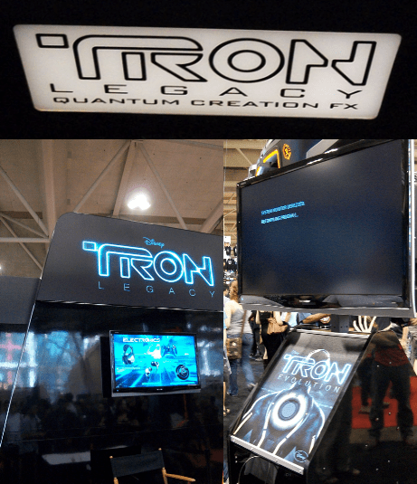 On the floor of the convention Disney has a booth to promote the upcoming film.  It showcases many of the cool merchandise we can look forward to, and also has a station where you can try your hand at the video game.  Entrants to the booth pass under a spectacular recreation of a Tron recognizer.  Maybe it’s not quite as cool as last year’s booth which included a Light Cycle, but it’s still a must-see of the convention.