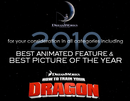 I don’t ever recall a FYC site being launched this far in advance, but it seems Dreamworks has gotten an early jump on advertising How To Train Your Dragon for consideration in 11 categories, including Best Animated Feature, Best Score and Best Picture – three of the main categories where it would appear if I had a ballot. Boasting sweeping 3D sequences of flight that rival Avatar and a genuine emotional heart, this certainly deserves the early attention.