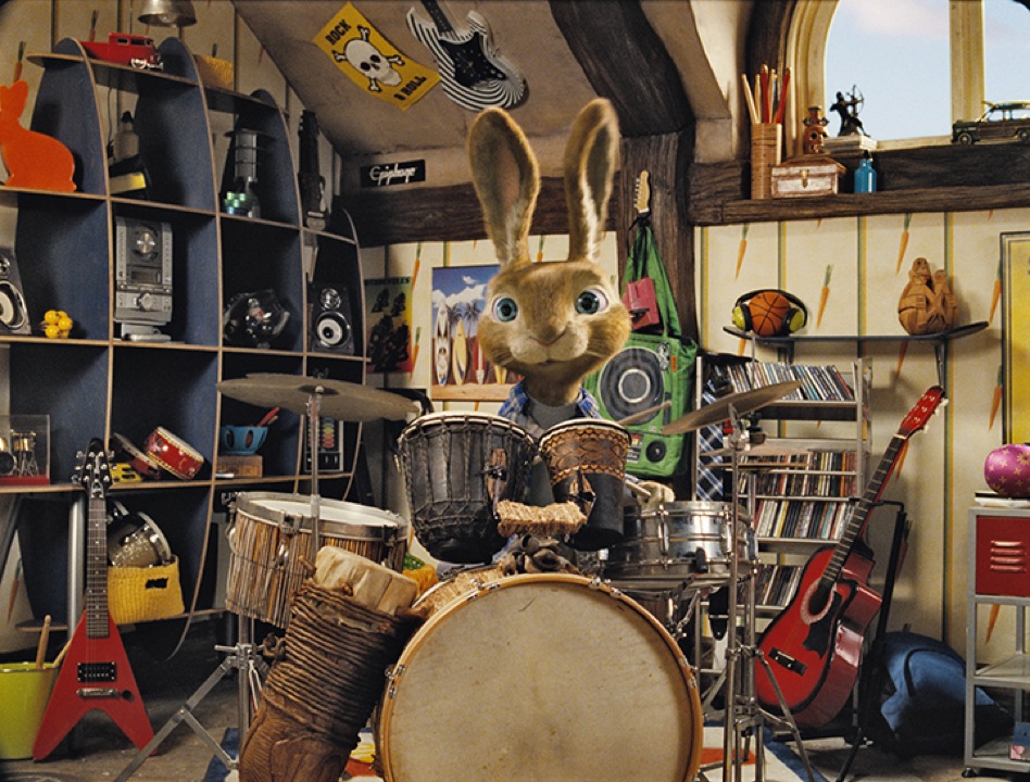 Hop is about E.B. (Russell Brand), destined to succeed his father (Hugh Laurie) as the Easter Bunny, from whose underground Easter Island factory sweets are delivered by chick-drawn flying carriage. Preferring a career as a drummer, E.B. escapes to Hollywood and ends up crashing with slacker Fred O’Hare (James Marsden), who helps him get an audition with talent scout David Hasselhoff. Meanwhile, the chick foreman (Hank Azaria) is attempting a mutiny on Easter Island.