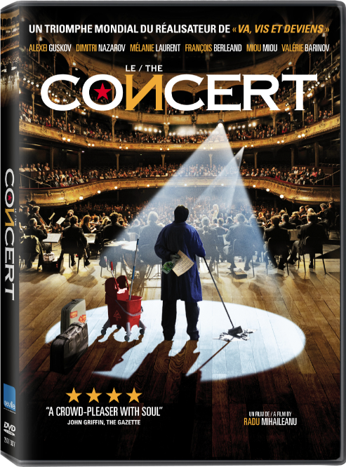 Le Concert is a comedy about the attempt by Andrei Filipov (Alexeï Guskov) distinguished former conductor of the Moscow Bolshoi orchestra, to bring an orchestra to Le Châtelet in Paris for a concert. In 1980, Filipov was kicked off the stage as an “enemy of the people” in the middle of a concert along with all his Jewish musicians. Now a janitor, he has intercepted the invitation to Paris and with his best Jewish friend Sacha (Dmitri Nazarov) pulls together as many former colleagues as he can, confident that even after 30 years they are better than the real Bolshoi orchestra. With the cooperation of his former Communist nemesis (Valeriy Barinov) as a manager and the musical and black market talents of his Roma friends, he just might pull it off, but once in Paris the whole caper could drown in a sea of vodka. There is an interesting twist in his choice of the brilliant young soloist Anne-Marie Jacquet (Mélanie Laurent) over the objections of her manager and former guardian (Miou Miou).