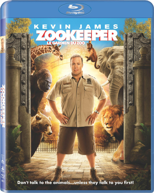 Zookeeper is the latest comedy from Adam Sandler’s Happy Madison company, promising loads of laughs in a sweet and predictable story that the whole family can enjoy. Kevin James is the title character Griffin, whose love for the animals in Boston’s Franklin Park Zoo is returned when they intervene to get him back with former girlfriend Stephanie (Leslie Bibb). Letting Griffin in on their ability to understand and speak English fondly recalls (mule) Francis from the 40s and (horse) Mr. Ed from the 50s. This works here because the good script is carried by a fine human and animal cast including the voices of (gorilla) Nick Nolte, (monkey) Adam Sandler, (lion) Sylvester Stallone, (lioness) Cher, (elephant) Judd Apatow, (bears) Jon Favreau and Faizon Love, (giraffe) Maya Rudolph, and (frog) Don Rickles.