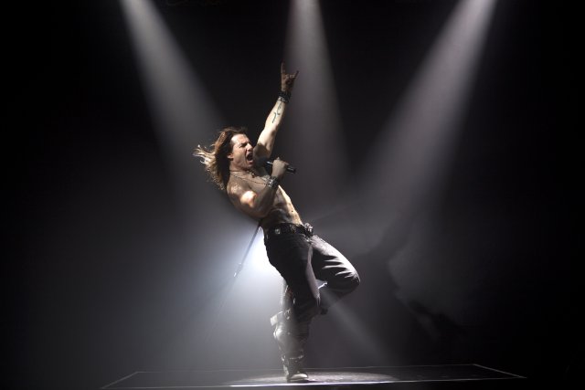 Stacee Jaxx (Tom Cruise) rocks out in Rock of Ages.