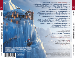 Overall, Desplat’s score has a childlike sense of wonder and innocence throughout. It has quite a gentle sound at times with many quick, light notes, which contrast with the occasional darker sounds of Pitch, and the quieter emotional tracks for Jack’s backstory. I found it to be a very nice listen and to work quite well within the film. In some ways, for better or for worse, it is a very classic sounding score for an animated film. I personally really ended up taking to it. I’d say if you really enjoyed the film, you’ll probably be happy getting a copy of the soundtrack as well – I know I was.