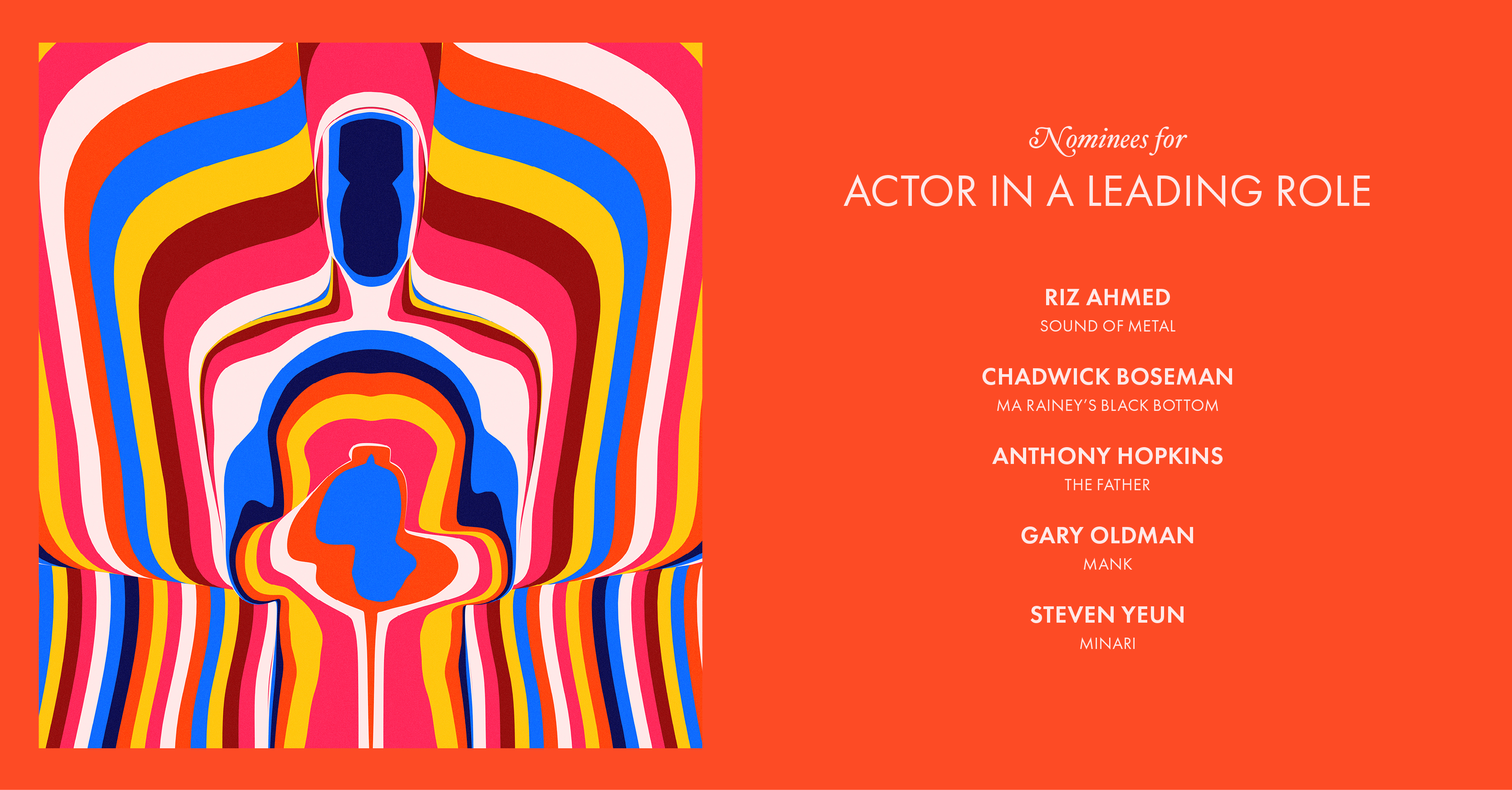 Predicted Winner: Nomadland. There is still an outside chance that early frontrunner The Trial Chicago 7 will come back from behind to win, and Promising Young Woman and Minari also have a lot of passionate supporters. But I’m pretty confident in predicting that Nomadland will prevail here, and it’s my own personal favourite of the bunch.