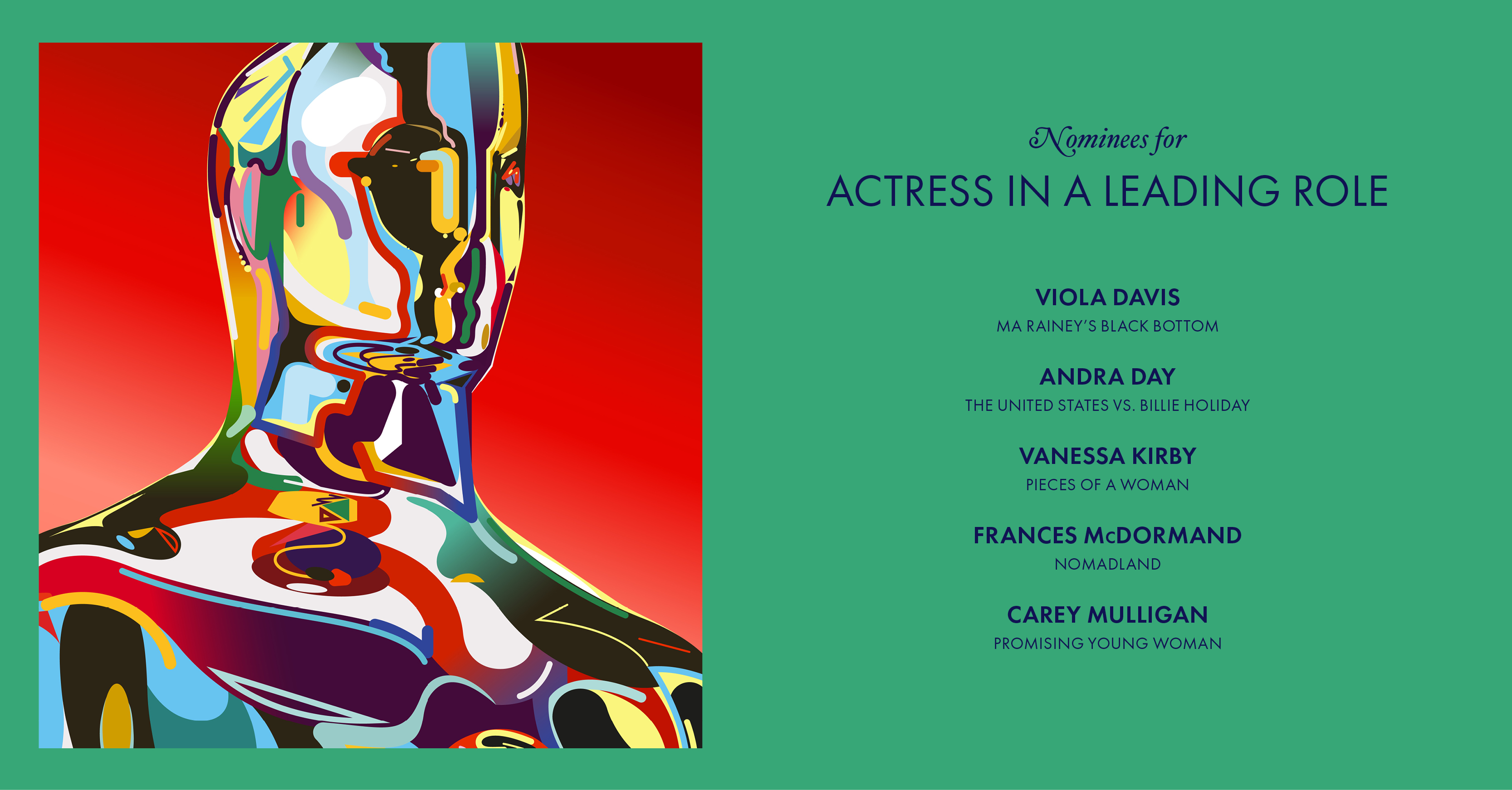Predicted Winner: Frances McDormand – Nomadland. This is the tightest and most hard to predict race of the night. Theoretically, any one of the five could win (though Vanessa Kirby taking this would be a major upset), since Andra Day won the Golden Globe, Carey Mulligan got Critics Choice, Viola Davis won at the SAGs, and McDormand just won the BAFTA. Logically, it will probably be Davis, but I’m going out on a limb to predict McDormand, mainly because I’m expecting a big night for Nomadland.