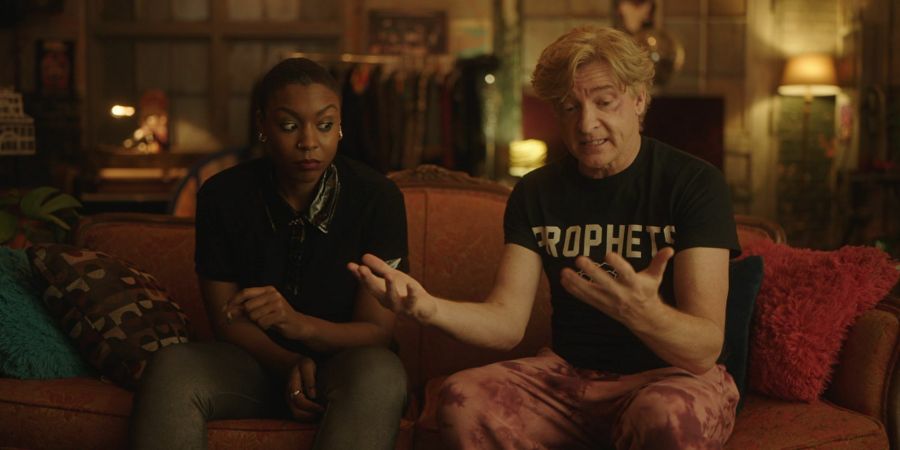 Casper teams up with Holly (Gabrielle Graham), a self-described “queer, black, vagina-haver” apathetic about the state of the world, who mistakes him for a homeless person. The two make a formidable team (bonding over the Toronto rock band PUP and sharing cocaine that Casper excitedly tells her is “legal in the future”), and they find a way to make money through sports betting, using his future knowledge.