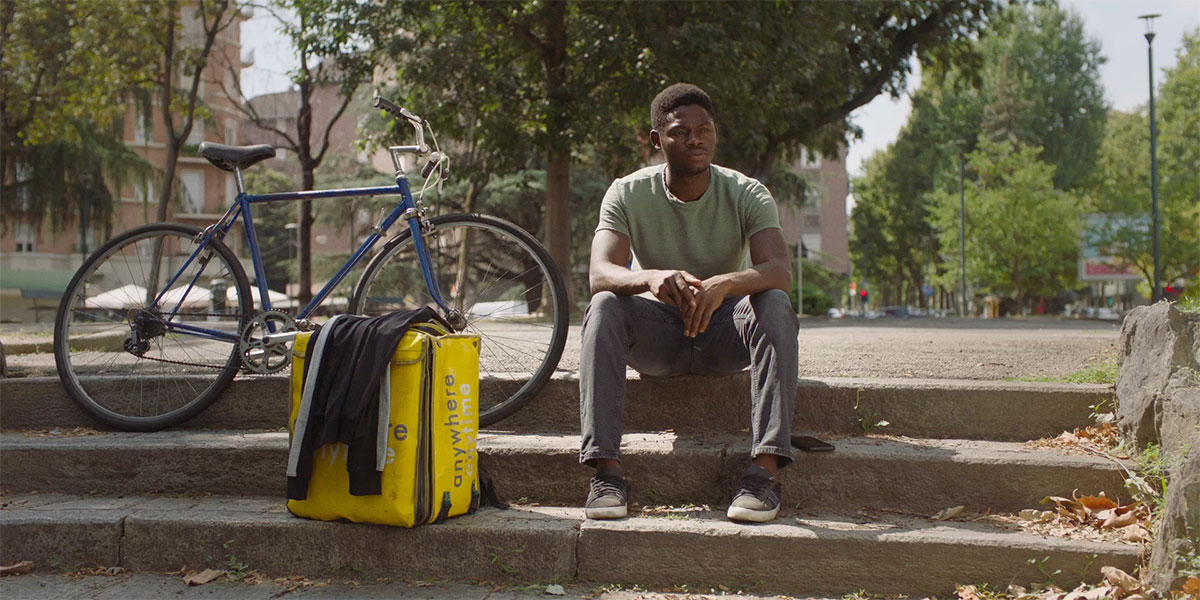 Issa (Ibrahima Sambou), the central character in director Milad Tangshir’s stripped down drama, is an undocumented Senegalese migrant trying to scrape by in Turin, Italy. Thanks to a friend (Moussa Dicko Diango), who lends him his phone and ID in order to work, Issa gets a job delivering food, and is able to get himself a used bike. Then the bike gets stolen. He needs a bike to work, but needs money to buy a new bike, etc.