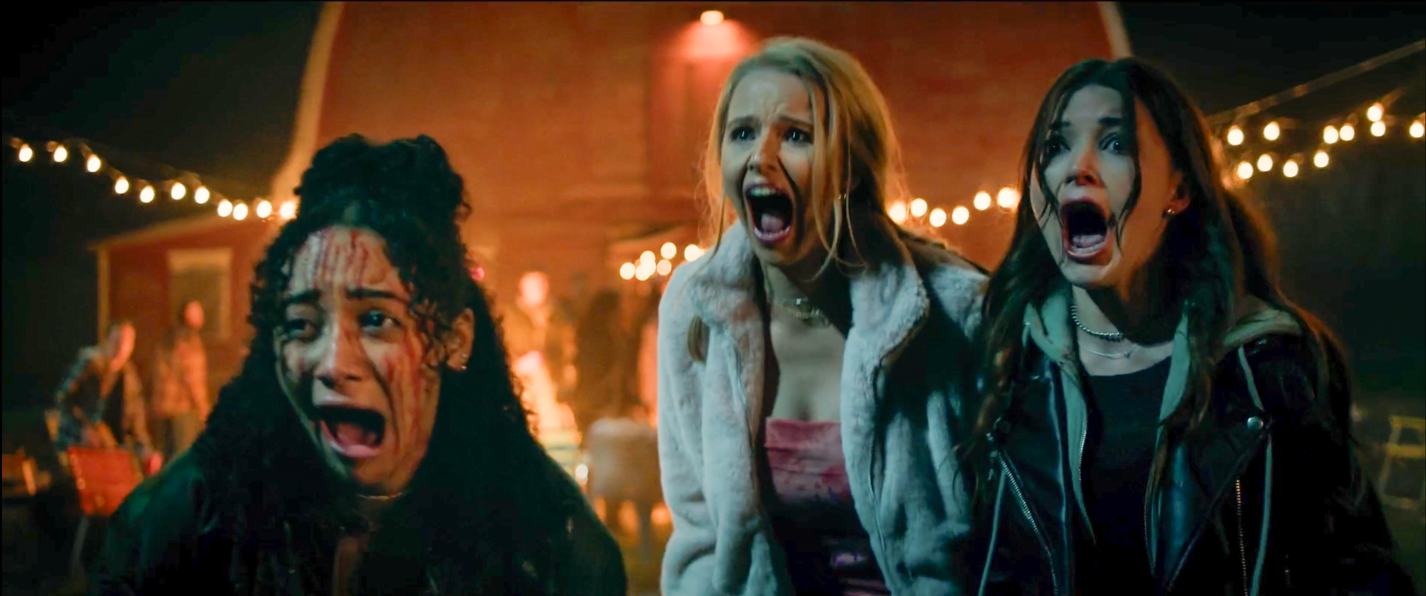 Killer clowns have been popularized in horror through Stephen King’s It and the more recent Terrifier franchise, and Clown in a Cornfield doesn’t reinvent the wheel. In fact, the film seems fully aware of its own lineage, with Frendo being influenced by both Pennywise and Art the Clown. The story doesn’t do away with the expected tropes (i.e., the characters all fit into high school movie archetypes), but rather has some fun leaning into them.