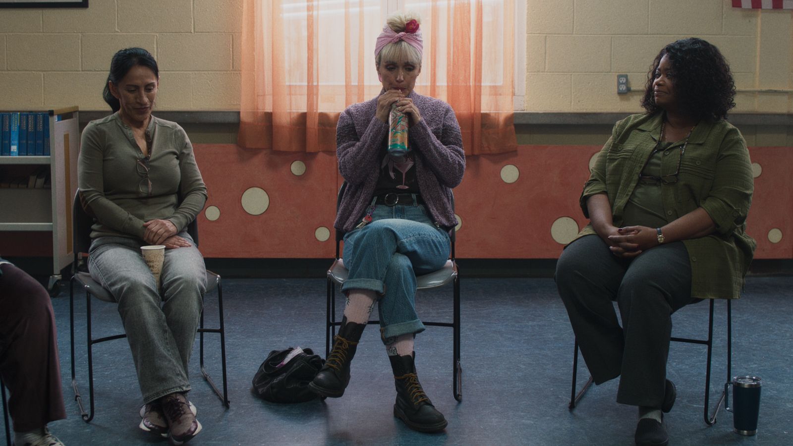 Meanwhile, Amanda starts living out of a women’s shelter in a church run by the strict, no-nonsense manager Barb (Octavia Spencer). Barb expects punctuality and sobriety, as well as attendance at group therapy sessions. The cast at the shelter is rounded out by Ariana DeBose, Demi Lovato, and Lea DeLaria, portraying a chorus of downtrodden characters who are all dealing with their own personal problems. Simon Rex also appears in a supporting role as a pencil-pushing employee at the towing company who serves as one of the gatekeepers between Amanda and her car.